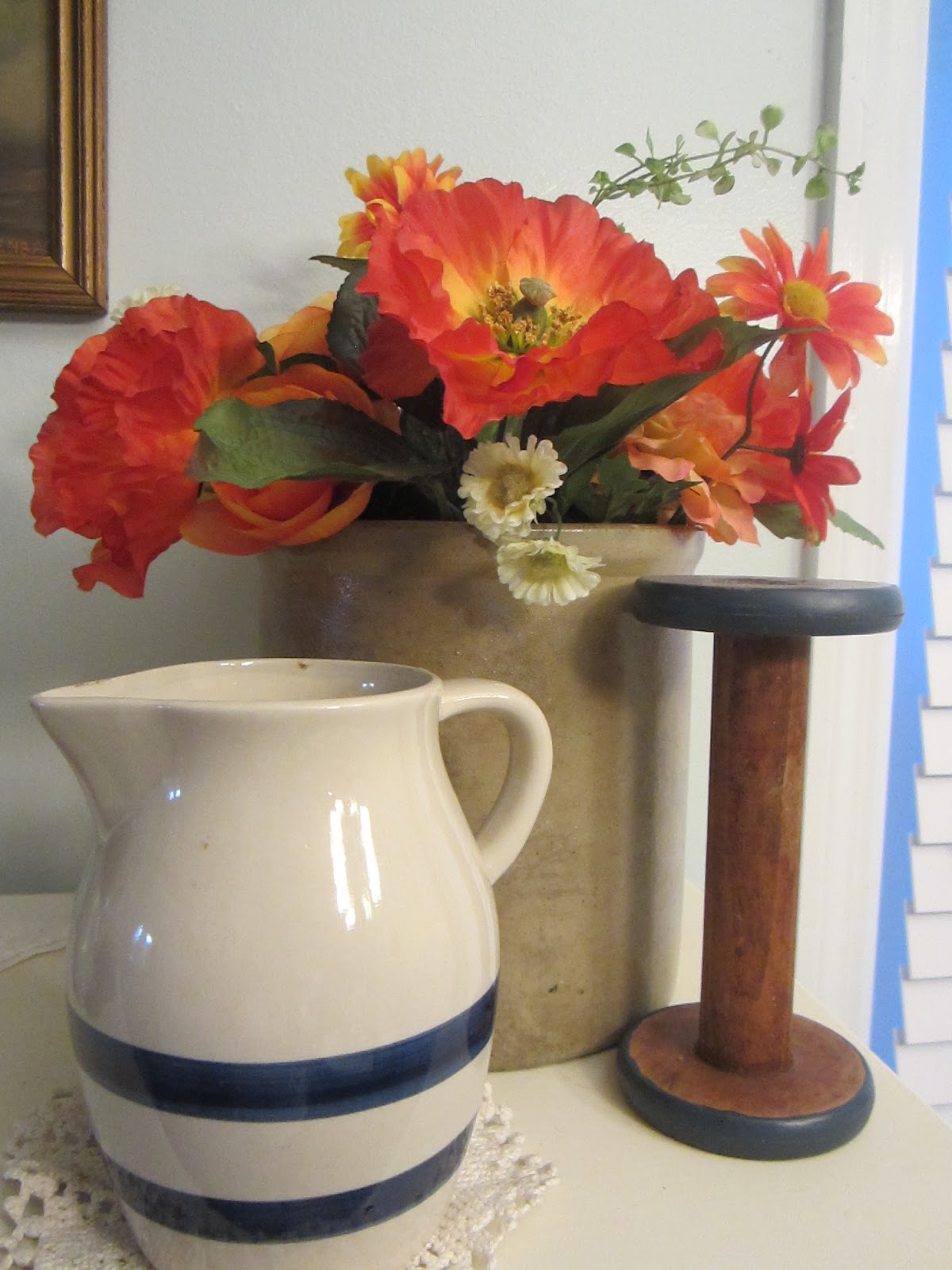 She, too, chose yellow daisies and we decorated the tables for the rehearsal dinner with birds' nests, canning jars, milk bottles, and my favorite ironstone pitchers. Place cards were placed in tiny pots with burlap filled with seeds for each guest to take home and plant so as to remember this day.